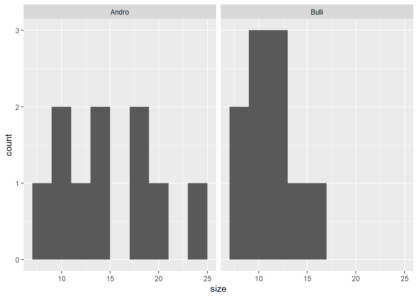 ggplot(blume, aes(x = size)) +