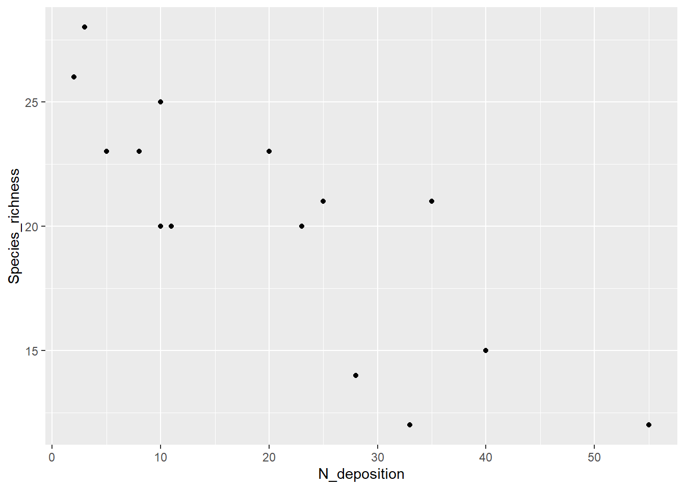 ggplot(df, aes(x = N_deposition, y = Species_richness)) +