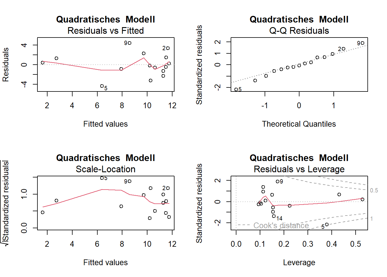 -> Die Plots sehen beim Modell mit quadratischem Term besser aus