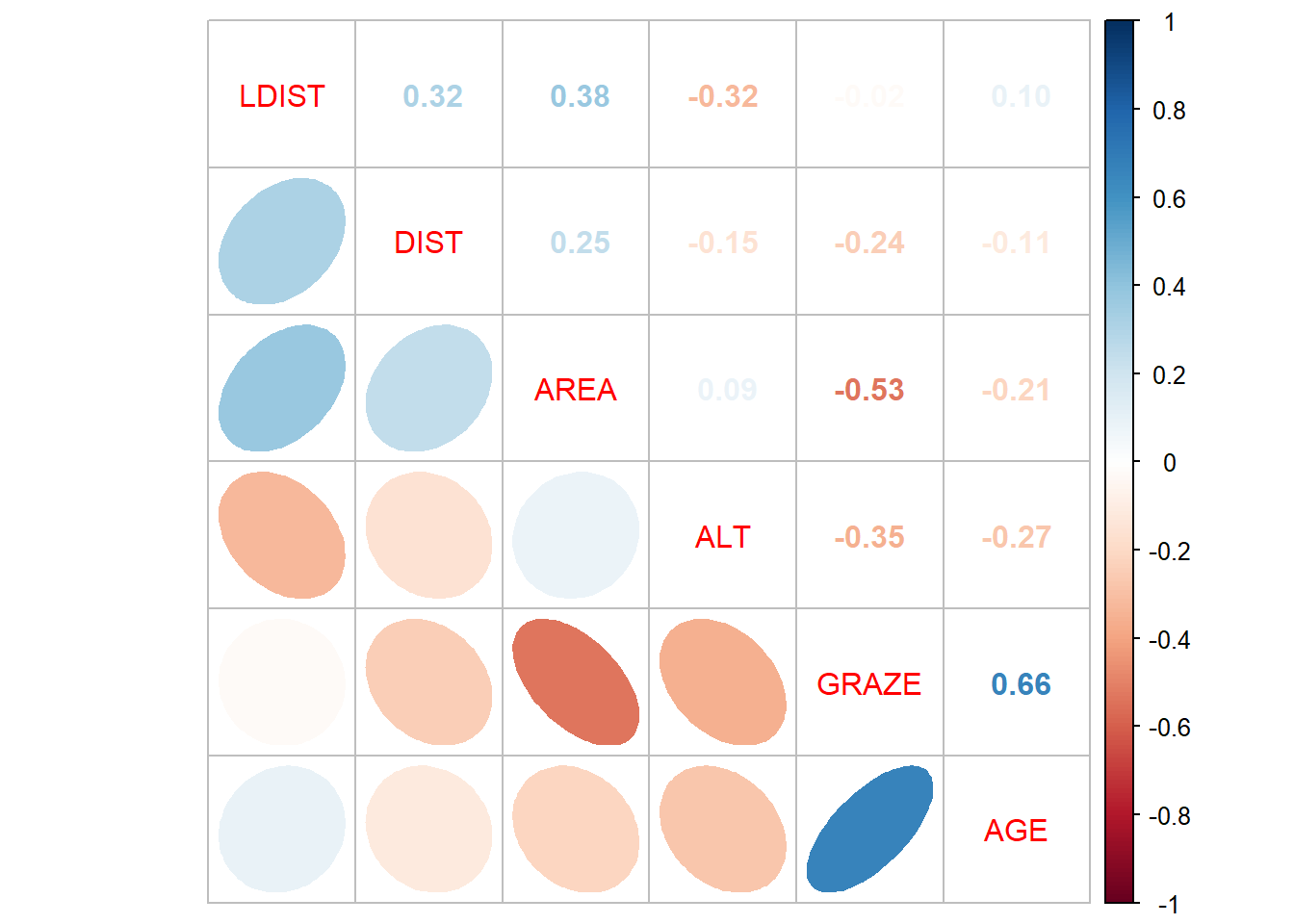 cor1 AREA AGE DIST LDIST GRAZE ALT
