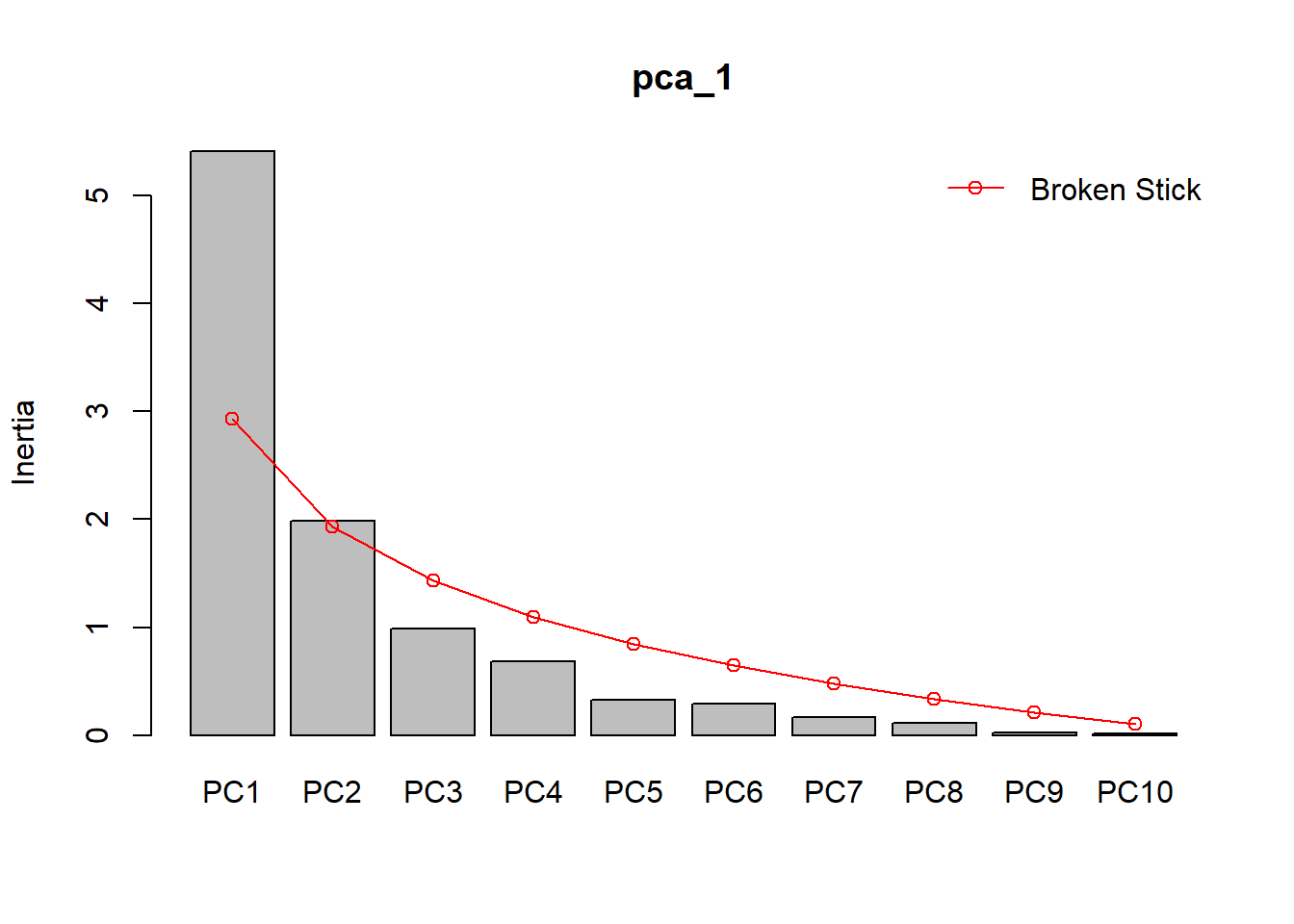 # Visualisierung der Anteile erklärter Varianz, im Vergleich zu einem Broken-Stick-Modell