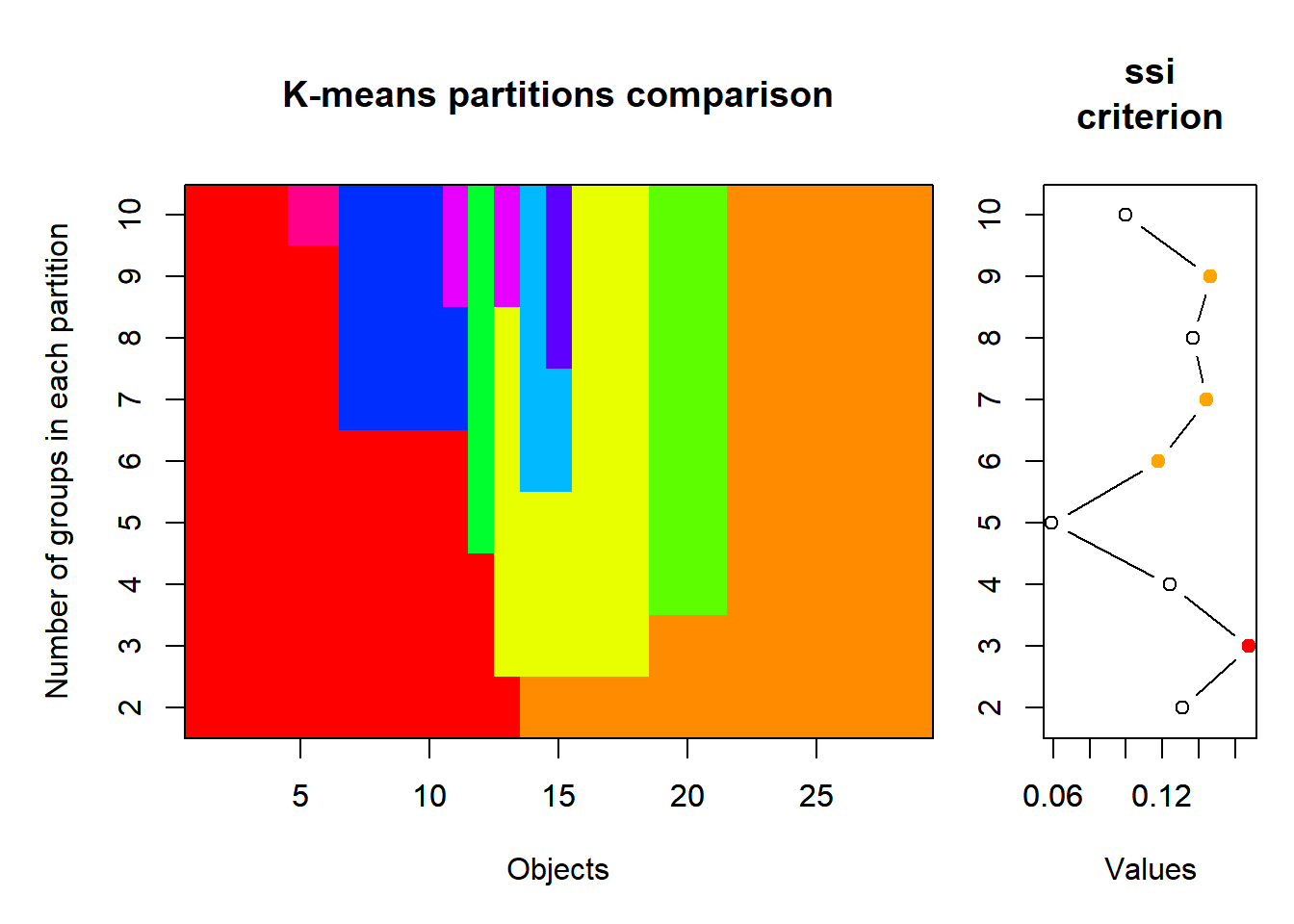aggregate(spe, by = list(cluster = kmeans_2$cluster), mean) cluster Cogo Satr Phph Babl Thth Teso