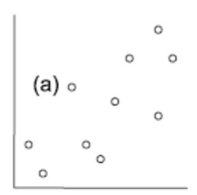 - Linearität: Eine Verletzung erkennen wir in der linken oberen Abbildung, wenn wir eine “Wurst” bzw. “Banane” sehen, also wenn die linken Punkte alle unter der gepunktelten Linie, die mittleren alle darüber und die rechten wieder alle darunter lägen (oder umgekehrt).