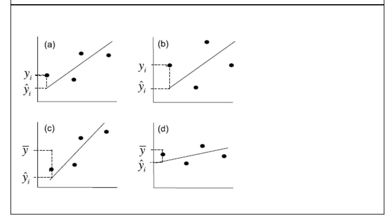 Abbildung 2.7. Visualisierung der verschiedenen Differenzen, die in die ANOVA-Tabelle einer linearen Regression einfliessen (aus Quinn & Keough 2002).