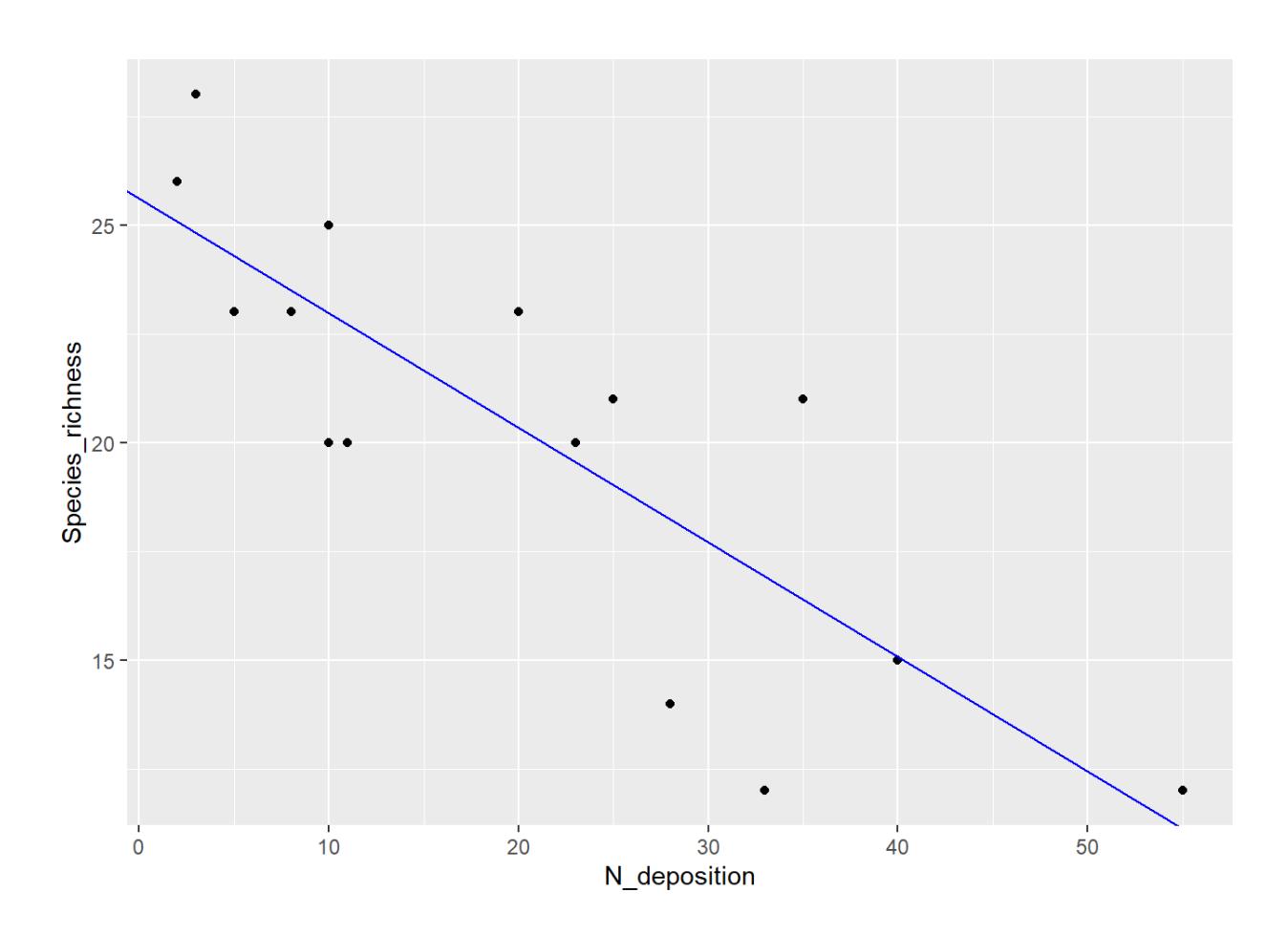 ggplot(df, aes(x = N_deposition, y = Species_richness)) +