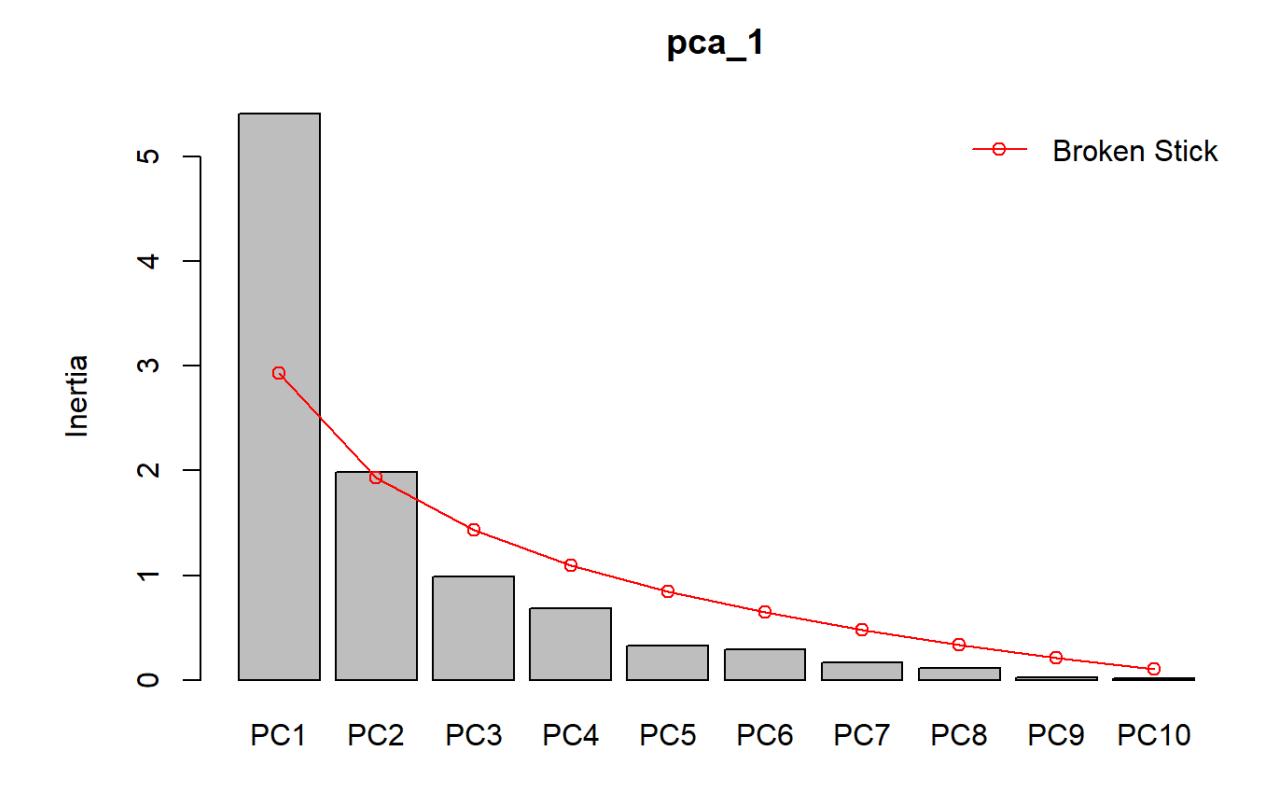 screeplot(pca_1, bstick = TRUE)